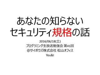 あなたの知らない セキュリティ規格の話 2016/06/18(土) プログラミング生放送勉強会 第41回 @サイボウズ株式会社 松山オフィス You&I