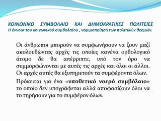Η έννοια του κοινωνικού συμβολαίου , νομιμοποίηση των πολιτικών θεσμών