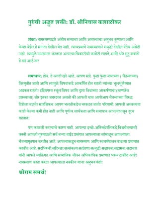पण; काळजी करण्याचे कारण नाही. आपल्या इच्छे-अनिच्छेपलिकडे; विश्वचैतन्याची जननी आपली गुरुमाउली सर्व बऱ्या वाईट प्रसंगात आपल्याला सांभाळून आपल्याला चैतन्यामृतपान करवीत आहे. आपल्याकडून नामस्मरण आणि स्वधर्मपालन वाढत्या प्रमाणात करवीत आहे. सदभिरुची, सदिच्छा, सत्संकल्प, सत्प्रेरणा, सत्बुद्धी, सद्भावना, सद्वासना, सदाचार यांनी आपले व्यक्तिगत आणि सामाजिक जीवन अधिकाधिक प्रमाणात भरून टाकीत आहे! नामस्मरण करता करता आपल्याला नक्कीच याचा अनुभव येतो!