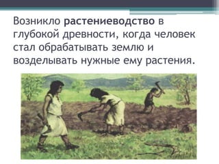 Документ описывает растениеводство, его историю и основные направления: полеводство, овощеводство, плодоводство и цветоводство. Основные культуры, возделываемые в рязанской области, включают зерновые, овощи и плодово-ягодные растения. В заключение подчеркивается важность растениеводства для сельского хозяйства региона.