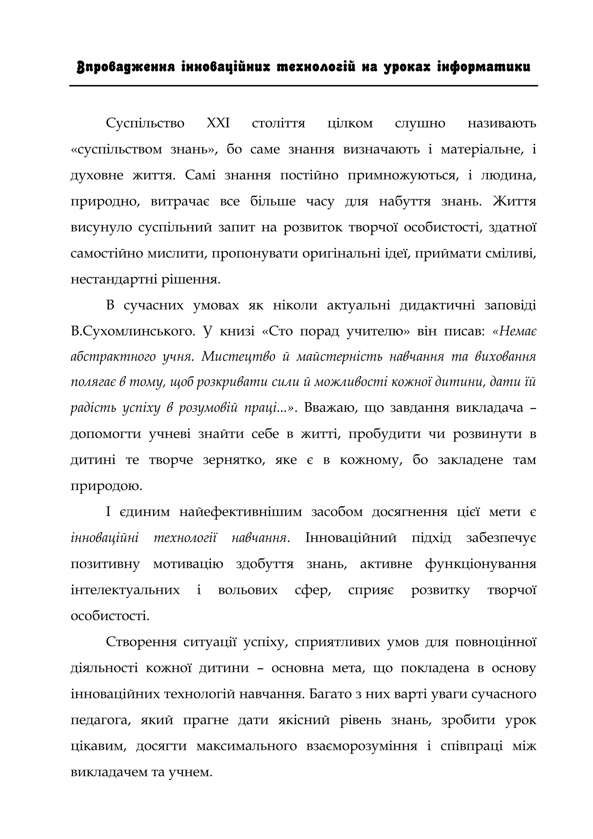 під час вивчення курсу інформатики інноваційних технологій