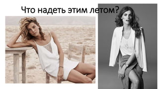 Документ обсуждает летнюю моду, предлагая одежду и аксессуары, подходящие для сезона. Упоминаются розовый кварц, лен, открытые плечи, джинсы с неровным краем и бельевой стиль. Также акцентируются такие аксессуары, как чокеры.