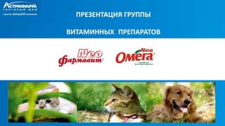 Документ содержит информацию о витаминах как необходимых для жизни органических веществах и их роли в нормализации обмена веществ и защите организма. Рассматриваются причины гиповитаминоза, классификация кормов и добавок, а также современные тенденции в зоорынке, подчеркивающие рост грамотности владельцев животных. Приводится описание витаминно-минерального комплекса 'фармавит® neo' и функционального корма 'омега® neo', их состав и эффективность.
