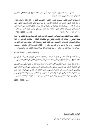 تتناول الوثيقة عمليات تنفيذ المنهج الدراسي، مؤكدة على أهمية تنظيم المناهج وتطويرها وتقييمها من خلال أساليب تدريس فعالة. كما تسلط الضوء على دور المعلمين والإدارات والمدارس في تطبيق المناهج وتنفيذها والجهود المشتركة المطلوبة من جميع المعنيين. أخيرًا، تشير إلى العوامل المؤثرة في عملية التنفيذ، بما في ذلك العوامل البشرية والبيئية والإدارية.
