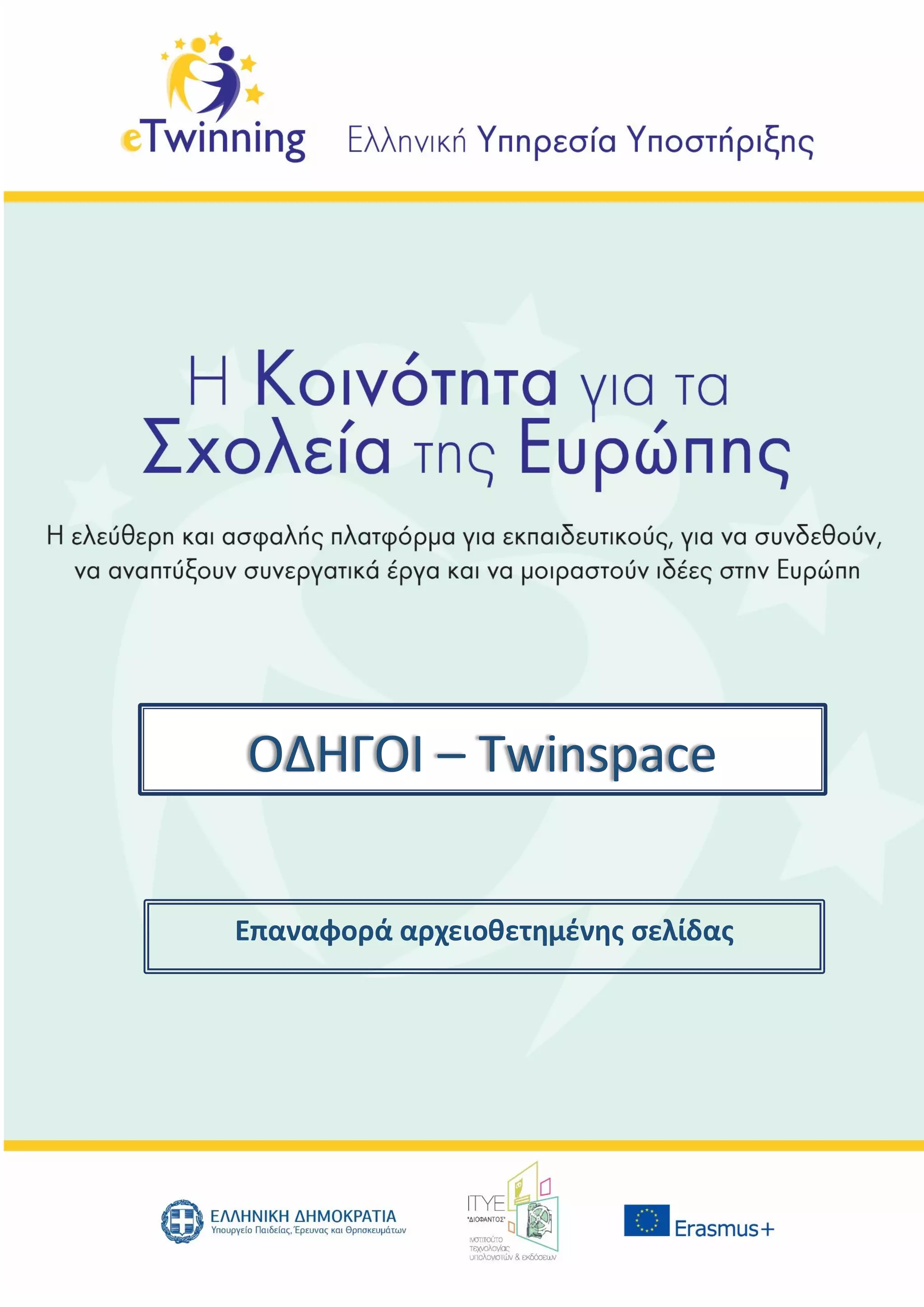 Πολλές φορές συμβαίνει κάποια σελίδα να εξαφανιστεί από το κεντρικό μενού με αποτέλεσμα να δημιουργείται η εντύπωση ότι έχει διαγραφεί. Αυτό είναι κάτι που δεν μπορεί να συμβεί στο Twinspace. Οι σελίδες δεν είναι δυνατόν να διαγραφούν. Αυτό που κατά πάσα πιθανότητα έχει συμβεί είναι η σελίδα σας κατά λάθος να έχει τεθεί σαν αρχειοθετημένη. Δείτε στον παρακάτω οδηγό πώς μπορείτε να την επαναφέρετε.