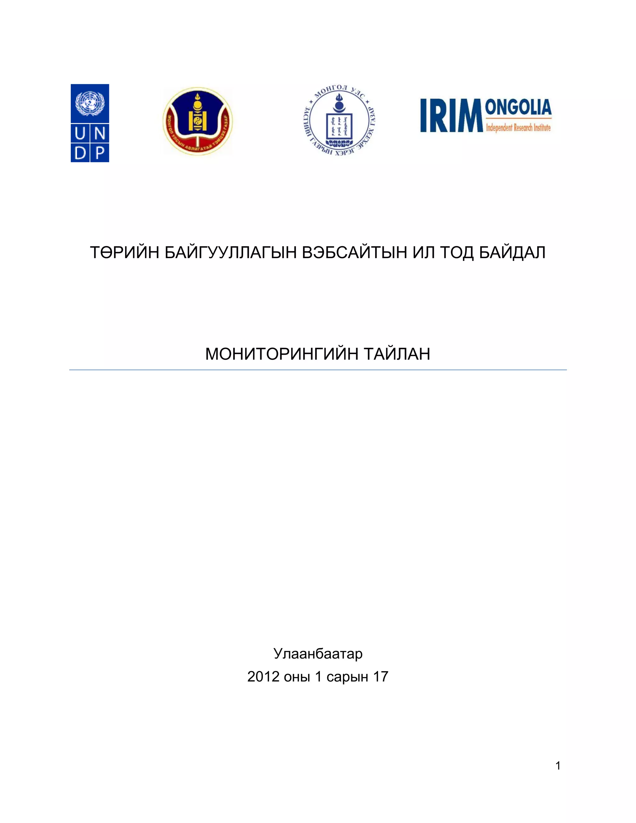 нээлттэй байдал вэб орчинд хийсэн мониторингийн тайлан 2010." Улаанбаатар, 2010.