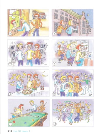 This document appears to be a table of contents for an English language textbook. It lists 9 units that cover topics such as saying hello to friends, camping, holidays, school, sports, and famous role models. Each unit contains multiple lessons that teach grammar structures and provide texts and exercises related to the unit theme. The document also includes publisher information and recommends the textbook for 7th grade general education students in Russia.