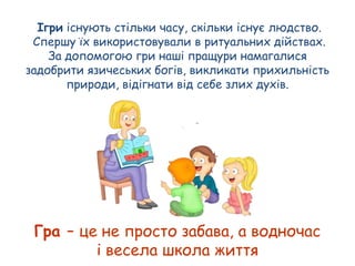Виявляється, що це не просто забава, а водночас і весела школа життя. В іграх закладена мудрість народна.