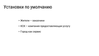 Документ описывает платформу для общения между жителями и управляющими компаниями (КСК), работающую по принципу клиентской поддержки. Она включает функции, такие как онлайн-чат, мобильное приложение и систему тикетов для обработки запросов жителей. Также рассматриваются популярные темы запросов и интересы горожан, а также роль маркетингового бюро, специализирующегося на улучшении коммуникации и доступности информации в городской среде.