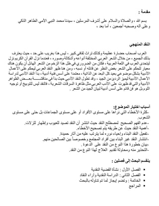 تتناول الوثيقة نشأة الأدب والنقد الأدبي في التراث العربي، موضحة تأثير القرآن الكريم على الشعر العربي وأهمية النقد في التمييز بين الأعمال الأدبية الجيدة والرديئة. كما تسلط الضوء على كيفية تطور النقد عبر العصور، وتحديداً في الفترة الجاهلية والعصر الأموي، وتناقش دور الناقد وأهمية ذوقه ومعرفته في تقييم النصوص الأدبية.