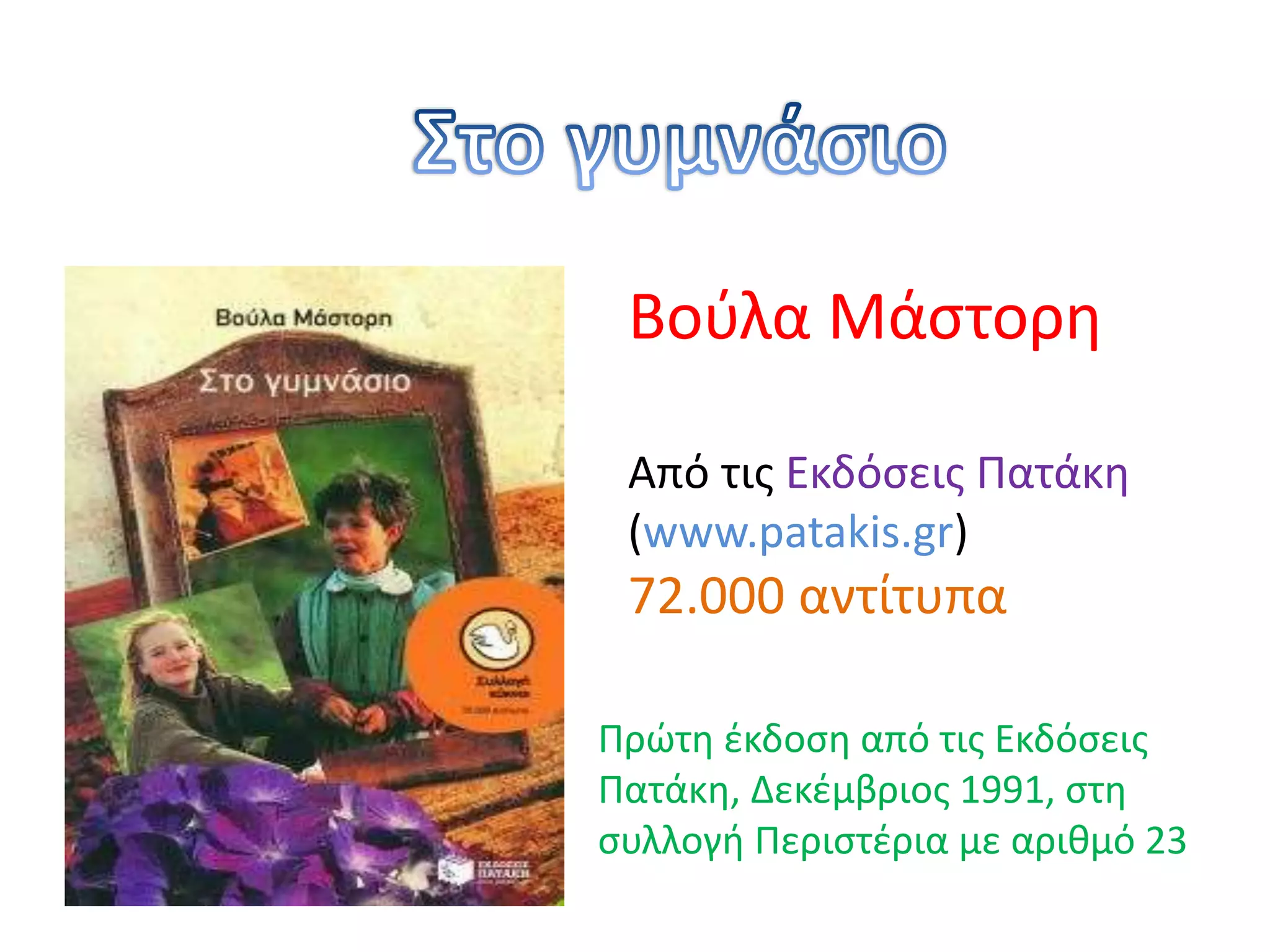 Το έργο «Στογυμνάσιο» είναι το δεύτερο βιβλίο με