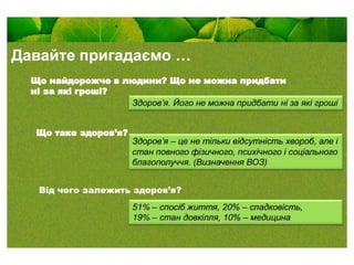 Однією з найголовніших цінностей людського життя є здоров'я.