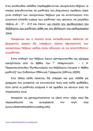 Στις ακόλουθες σελίδεςπεριλαμβάνονται οικογένειες λέξεων οι