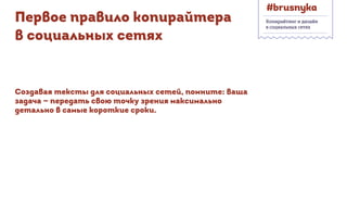 Документ представляет собой курс по SMM, акцентируя внимание на копирайтинге и дизайне для социальных сетей. Он описывает ключевые принципы эффективного написания, включая использование простого языка, избежание сложной терминологии и вовлечение пользователей. Также предлагаются примеры и рекомендации по оформлению постов, созданию контента и ошибкам, которые следует избегать.