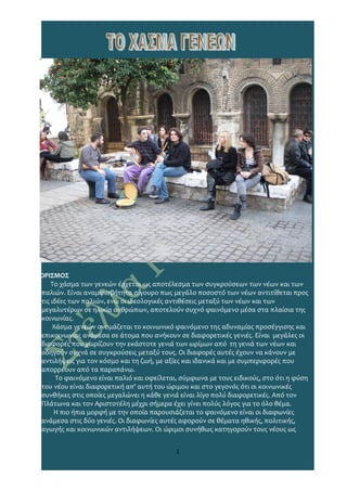 επικοινωνίας ανάμεσα σε άτομα που ανήκουν σε διαφορετικές γενιές. Είναι μεγάλες οι