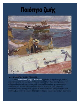 έννοιας και να συνειδητοποιήσει ότι η ποιότητα ζωής προσδιορίζεται από