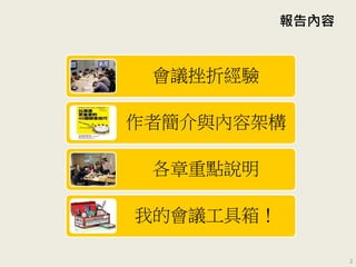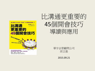 本文件讨论了企业中常见的会议挫折,并提供了45个开会技巧以提高会议的有效性。作者别所荣吾通过收集问卷和经验,总结出无效会议的特征及改善方法。书中包含了对不同会议类型及其目的的分析,强调了有效沟通和决策的重要性。