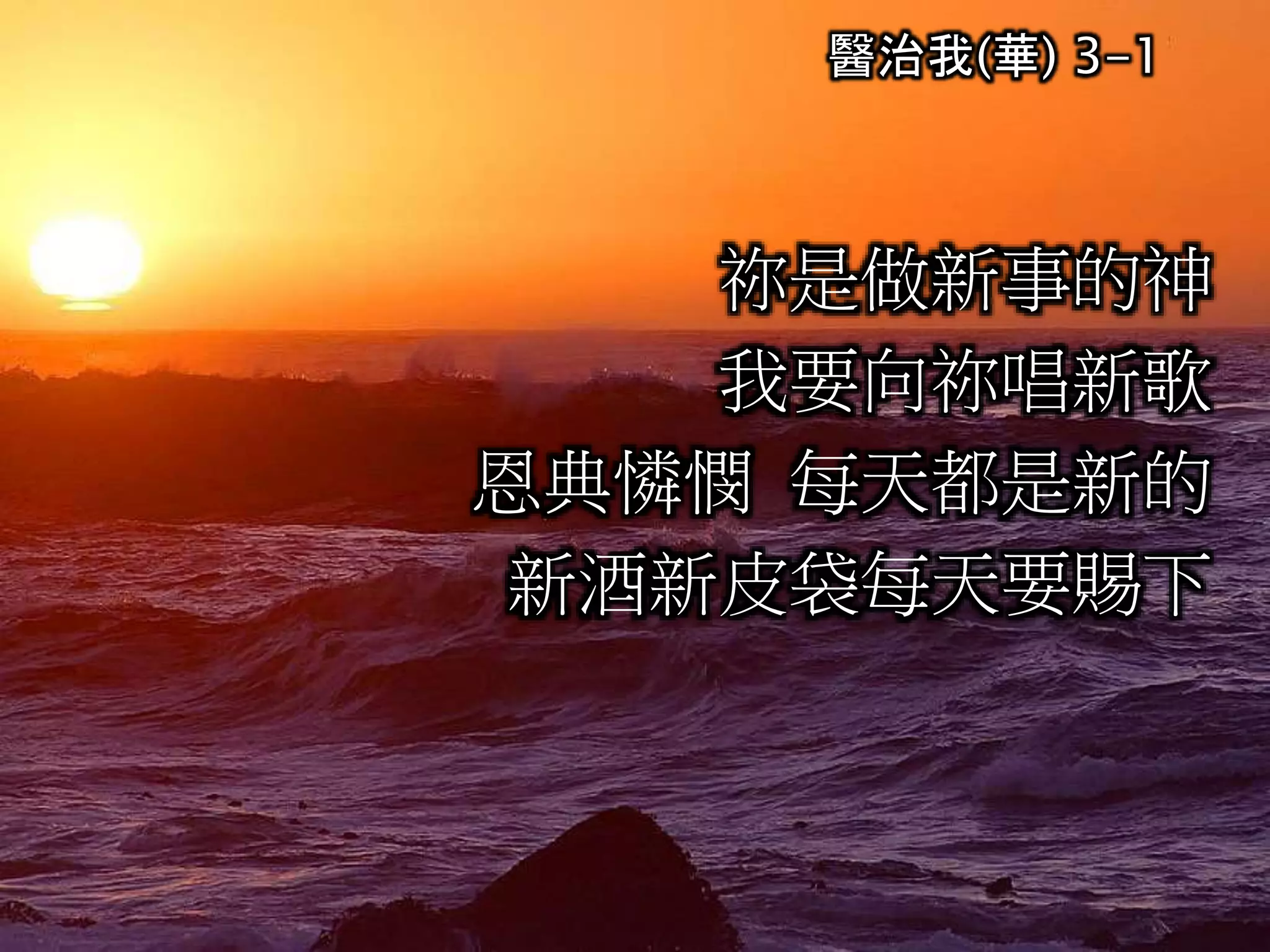 醫治我(華) 3-1 祢是做新事的神 我要向祢唱新歌 恩典憐憫 每天都是新的 新酒新皮袋每天要賜下