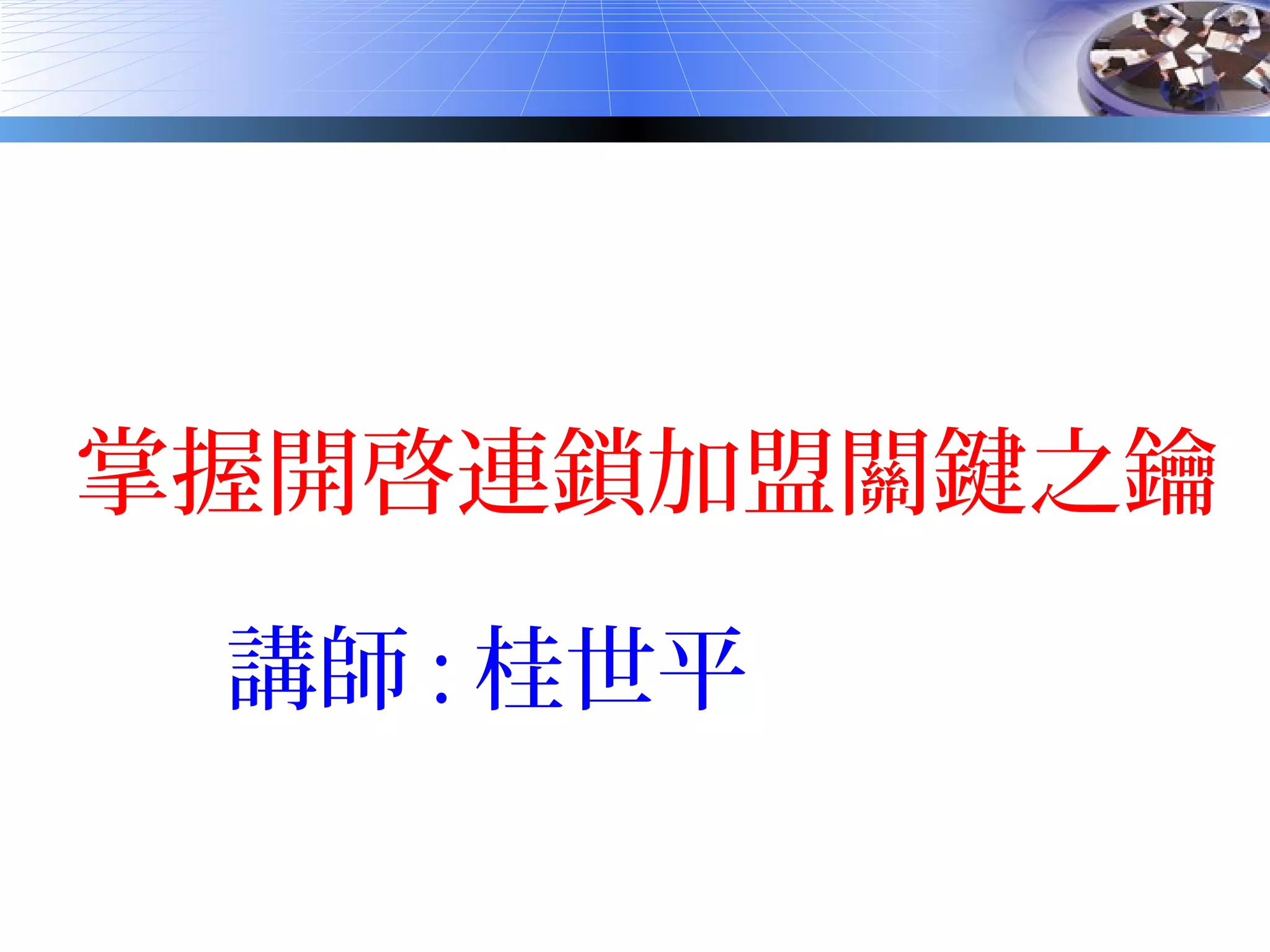 本文件由桂世平讲师介绍连锁加盟的关键要素,涵盖了连锁加盟的组织规划、展店策略及获利空间等内容。桂世平拥有丰富的行业经验,参与过多国讲座,并为1200多位企业提供咨询服务。该文档还详细讨论了总部及分公司的组织架构、各个部门的功能,以及加盟系统中商流、物流、金流和信息流的规划。