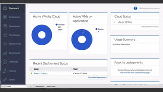 Документ представляет обзор возможностей автоматизации центров обработки данных (ЦОД) с использованием решений Cisco, таких как Cisco UCS Director и Cisco Cloud Center. Он подчеркивает управление виртуализированной и физической инфраструктурой, поддерживая масштабируемость и безопасность в гибридных облаках. Основное внимание уделяется интеграции различных облачных сервисов и упрощению процессов развертывания и управления приложениями.
