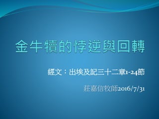 本文围绕出埃及记32章1-24节,探讨以色列人在摩西延迟归来的情况下向亚伦请求造金牛神的事件,揭示了他们在信仰上对看得见的偶像的依赖而忽略了耶和华上帝的真实存在。此文强调,真正的信仰关系应建立在对上帝的认识与坚定的信心上,而非仅仅依赖于外在的显现和习惯。作者提出了在困难环境中要认识自我软弱的重要性,以及如何通过信仰纠正错误、回归于上帝的爱与祝福。