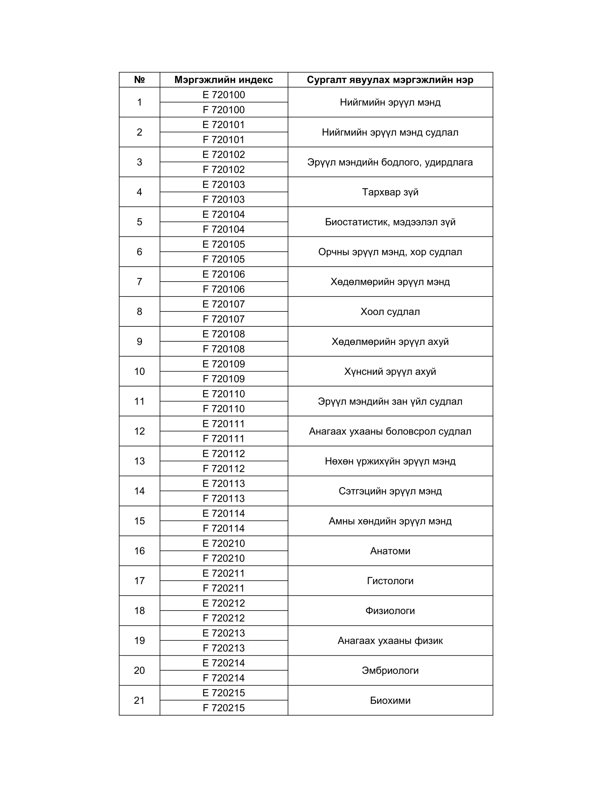 Документ содержит обширный перечень профессиональных названий и специальностей в области здравоохранения и медицинских наук. Включены дисциплины, такие как общественное здоровье, биостатистика, анатомия, фармацевтика и многие другие медицинские специализации. Кроме того, перечислены роли в сестринском деле и реабилитации, а также области традиционной медицины.