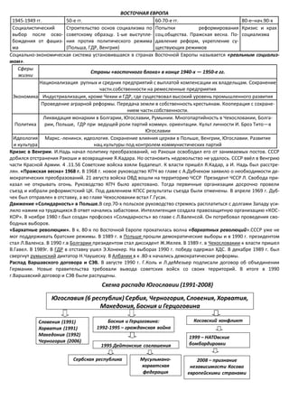 Документ описывает развитие социалистических режимов в Восточной Европе в 1945-1990 годах, включая экономические и политические реформы, кризисы и революции. Он охватывает ключевые события, такие как Пражская весна, движение «Солидарность» в Польше и волну «бархатных революций», приведших к падению социалистических режимов. Также рассматривается распад Варшавского договора и СЭВ, а также процесс объединения Германии.