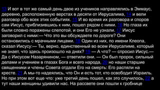 Документ описывает событие встречи Иисуса с учениками, которые не узнали его, обсуждая недавние события его распятия и слухи о воскресении. Иисус объясняет им пророчества о себе, и в конце концов, они узнают его во время причастия. В тексте подчеркивается важность веры и личного общения с Богом, а также необходимость участия в церковной общине.