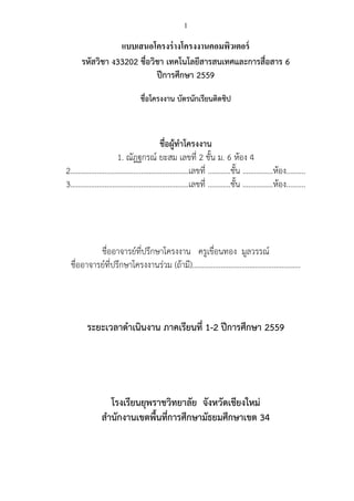 1 แบบเสนอโครงร่างโครงงานคอมพิวเตอร์ รหัสวิชา ง33202 ชื่อวิชา
