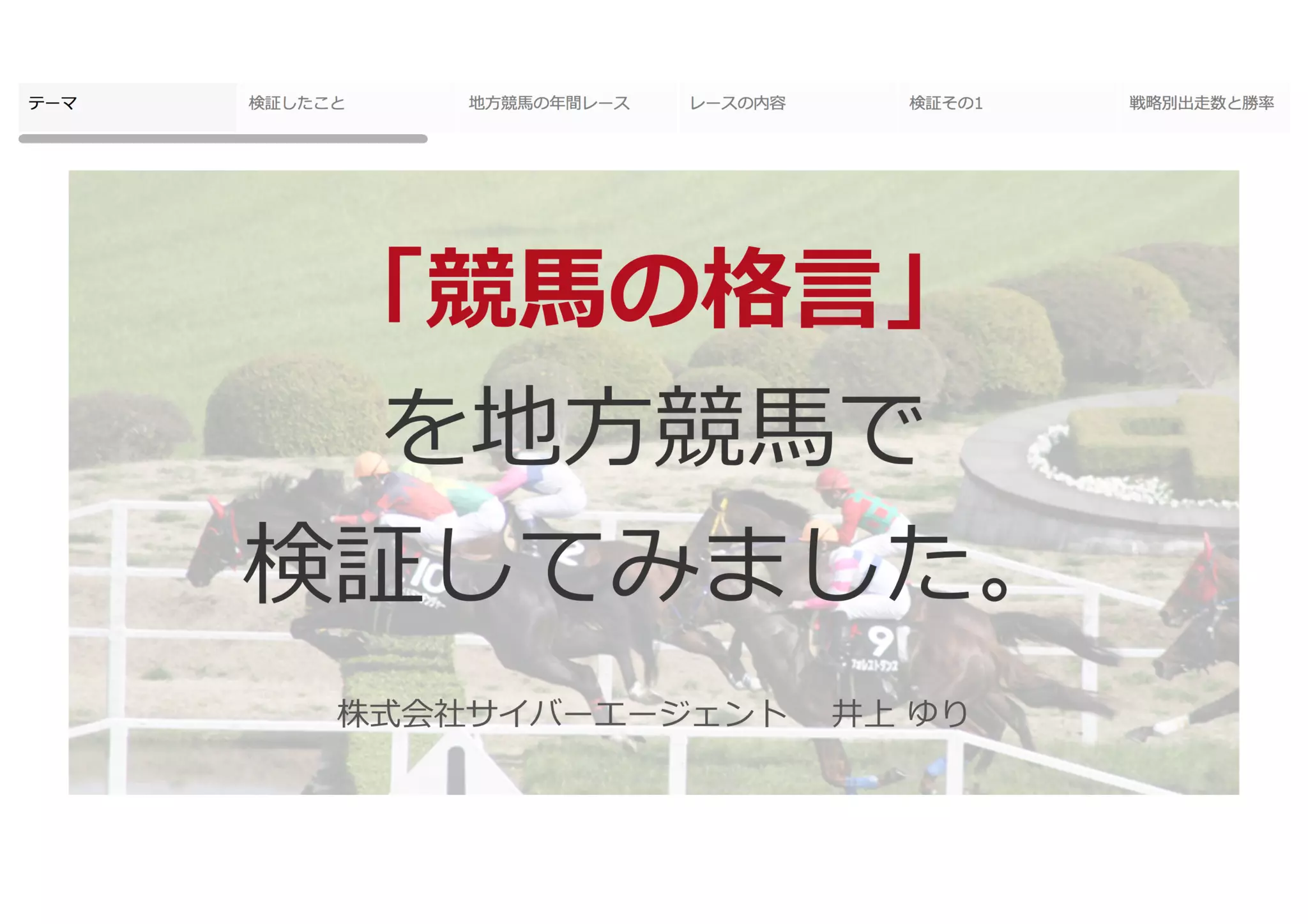 地方競馬のデータを使って「競馬の格言」が本当かどうか検証してみました。 このプレゼンテーションはTableauのストーリーを使って作成しています。