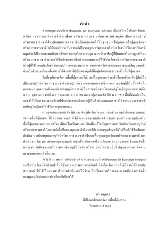 ตัวอย่างค่าแทนคุณระบบนิเวศจากการใช้น้า คือ Paying for Water Services in Central