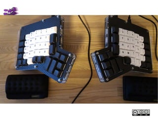 Configurator – 自分だけのこだわりレイアウト – 日々レイアウトを調整して最適化 – 全ての指に負担を分散 ● レイヤー機能 – キー数が足りない分はレイヤーで補う – レイヤーを活用すれば通常のキーボードよりキーが多い – どのレイヤーにどのキーを配置するかは自由自在 – 用途に応じて使い分けも可 オープンソースなので形状なども やる気になれば変更可能 DVORAK 化も 可能!!
