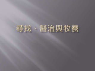 文档探讨了主耶和华对其羊群的关怀,强调失落者、受赶逐者和受伤者的救赎。通过比喻,指出现代社会中人们的困境与内心的空虚,以及通过信仰找到生命意义的重要性。上主愿意进入暗处,医治并引导迷失的人回归。
