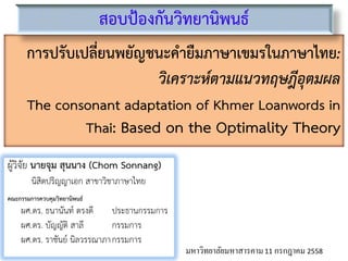 • การศึกษาเปรียบเทียบพยัญชนะธนิตในภาษาเขมรและภาษาไทย “TheComparative