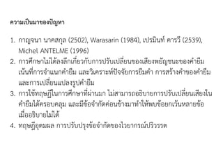 - ในการศึกษาอธิบายการเปลี่ยนแปลงของพยัญชนะท้ายพยางค์ของคายืม