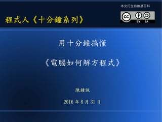 本文解释了如何使用计算机求解方程式,包括暴力法、二分搜索法、爬山算法和迭代法等多种方法。暴力法虽然强大,但速度较慢,而二分搜索法和迭代法则提供了更高效的解决方案。最后,文中强调了设计良好的迭代函数和选择适当的初始值对确保收敛的重要性。