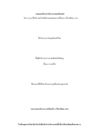 แบบเสนอโครงร่างโครงงานคอมพิวเตอร์ วิชา ง33202 ชื่อวิชา
