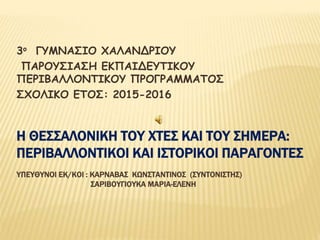 Η ΙΣΤΟΡΙΚΗ ΕΞΕΛΙΞΗ ΤΗΣ ΘΕΣΣΑΛΟΝΙΚΗΣ ΚΑΙ