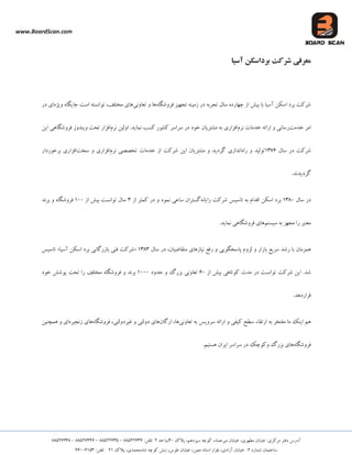 شرکت برد اسکن آسیا فعالیت خود را از سال 1383 با هدف تولید نرم افزار های فروشگاهی و همچنین ارائه تجهیزات فروشگاهی مختلف آغاز نموده است و در حال حاضر با گذشت یک دهه از فعالیت شرکت برد اسکن آسیا تعداد کاربران محصولات این شرکت بیش از ،50000 واحد می باشد.