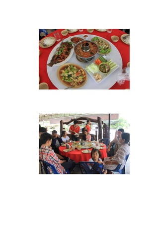 9 ที่นั่ง มัคคุเทศก์ 1 ท่าน ผู้ช่วยมัคคุเทศก์ 1 ท่าน นักท่องเที่ยว 8 ท่าน ลาดับที่ รายการค่าใช้จ่าย ราคาร่วม ราคาต่อ 1 ท่าน 1 รถตู้ VIP ปรับอากาศ 4,000 500 2 อาหารเช้า 320 40 3 อาหารกลางวัน 1,400 175 4 อาหารว่างและเครื่องดื่ม 320 40 5 ธรรมเนียมค่าเข้าชม 480 60 6 ประกันชีวิต 280 35 7 เบ็ดเตล็ด 800 100 ราคารวม 7,600 950 ราคาขาย 7,920 990 กาไร 320 40 รายการอาหารและเครื่องดื่ม ลาดับที่ รายการอาหาร เมนูอาหารและเครื่องดื่ม ราคารวม 1 คน ราคารวม 8 คน 1 อาหารเช้า ข้าวผัดไข่ดาว(แบบกล่อง) 40 320 2 อาหารเที่ยง 1. ผัดผักรวม 2. หลนปลาสลิด 3. ปลานิลราดพริก 4. ยารวมมิตรทะเล 5. ต้มยากุ้ง 6. พะแนงหมู 7. ผลไม้รวม 8. ข้าวสวย 9. น้าเปล่า/น้าแข็ง 175 1,400 3 อาหารว่าง(เช้า) ขนมเลย์,เฉาก๊วย,น้าเปล่า 40 320 4 อาหารว่าง(บ่าย) ขนมปาร์ตี้,น้ามะพร้าว,น้าเปล่า
