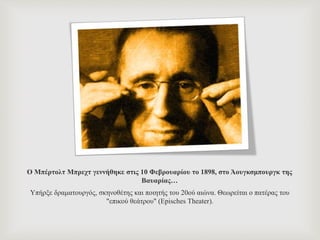 Ο Μπέρτολτ Μπρεχτγεννήθηκε στις 10 Φεβρουαρίου το 1898, στο Άουγκσμπουργκ της
