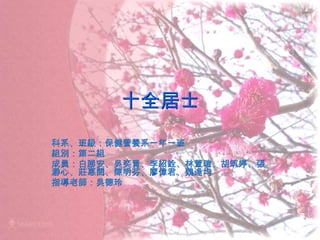 十全居士 科系、班級:保健營養系一年一班 組別:第二組