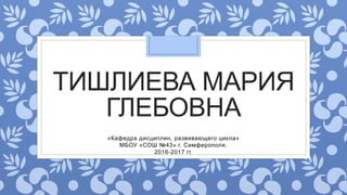 Тишлиева Мария Глебовна работает на кафедре музыкального искусства в Симферополе, обучая учащихся 5-9 классов и имея 2 года опыта. Ее тема самообразования посвящена музыкально-драматическим приемам, что помогает развивать музыкальное и творческое мышление у детей. Внедрение проектной работы и использование современных технологий способствует улучшению понимания музыки и активному участию студентов в конкурсах и мероприятиях.