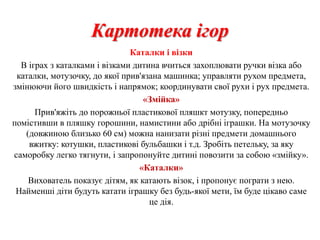 виконання, запропонувавши дитині штовхати візок з невисокою гірки.