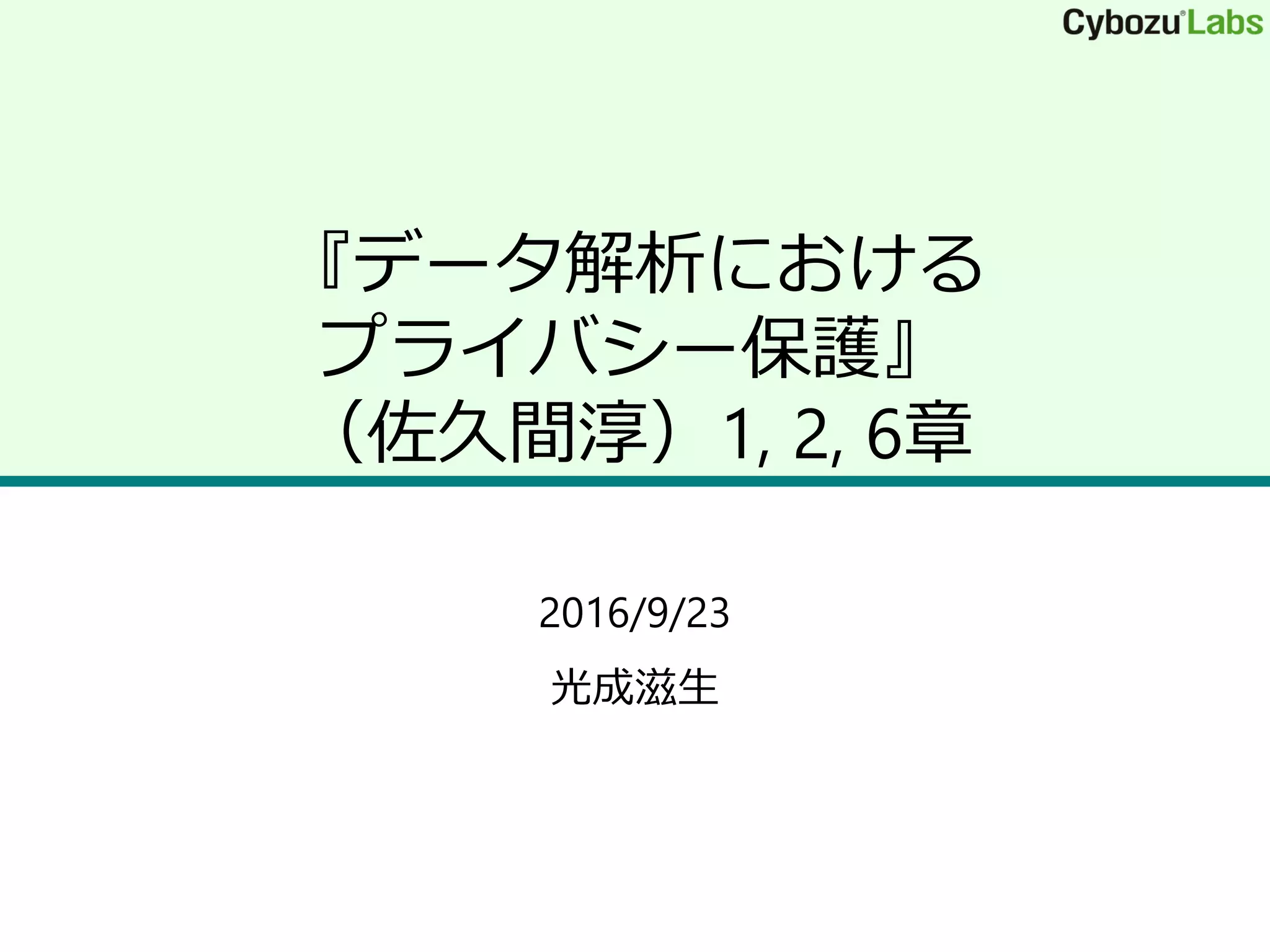 『データ解析における プライバシー保護』 (佐久間淳)1, 2, 6章 2016/9/23 光成滋生