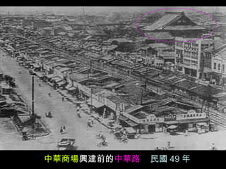 中華商場于1961年落成,成为台北重要的商业区,吸引了大量人流,促进了西门町的繁荣。随着时间推移,商场逐渐变得拥挤和老旧,最终于1992年拆除。文档回忆了中華商場的兴起与衰落,刻画了当时人们的生活记忆。