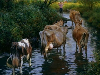 The document introduces Robert Duncan, a farmer born in Utah who started painting when he was 11 years old. It then presents a slideshow of his remarkably talented and accurate paintings, which could be mistaken for photographs. The slideshow is accompanied by music and aims to showcase Duncan's artistic abilities.