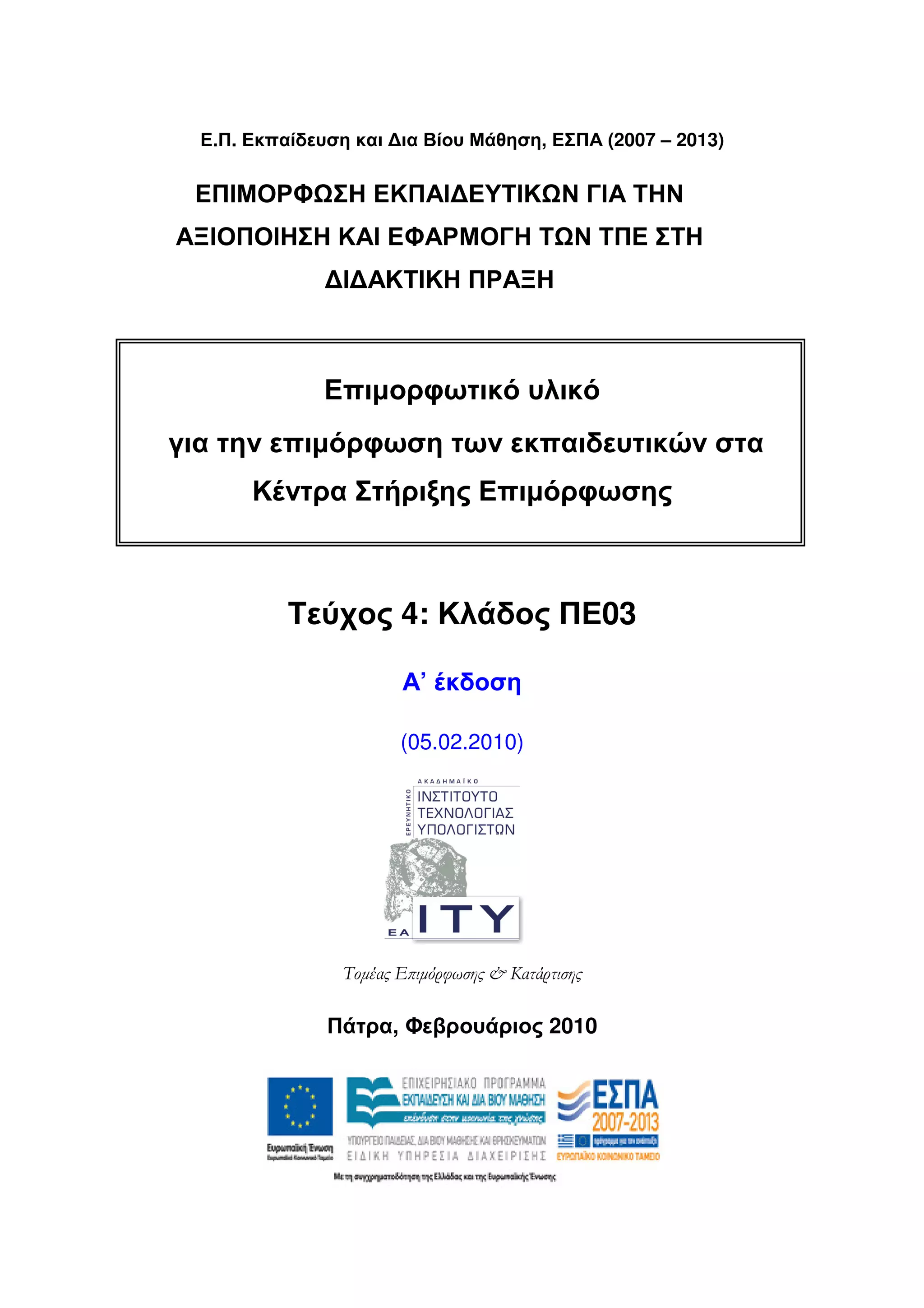 Τοµέας Ε ιµόρφωσης & Κατάρτισης