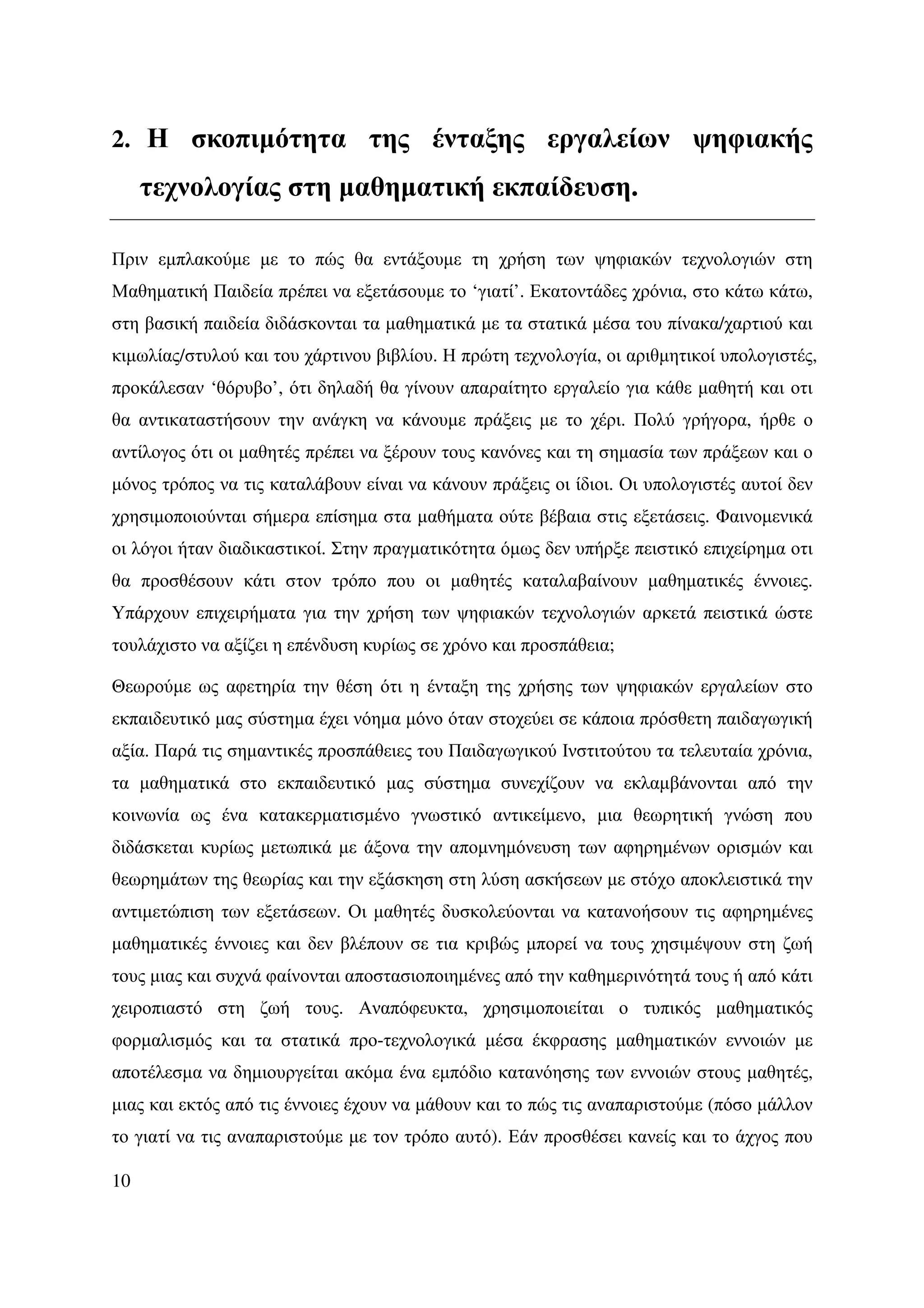 Η σκοπιµότητα της ένταξης εργαλείων ψηφιακής τεχνολογίας στη µαθηµατική εκπαίδευση