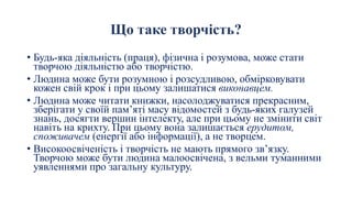 Творчість - це створення нового в різних планах і масштабах.